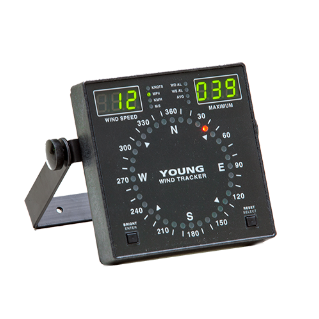YOUNG 06201型風力跟蹤器是一款緊湊型風速和風向顯示器,可用于廣泛的應用。與大多數YOUNG風傳感器兼容(不包括電壓輸出型號),它將顯示瞬時風速和極大陣風值,可選擇mph, m/s, km/hr, 或knots。風向顯示在彩色LED的圓形羅盤圖案上,顯示電流方向和可變性。前面板控制允許亮度調整和極大風速值的重置。電壓輸出(0-5 VDC代表0-100 m/s和0-360度)為標準輸出。所含雙電源與110 VAC或230 VAC電源電壓兼容??梢詥⒂谩帮L跟蹤器”來顯示平均值。警報繼電器連接可用于風速和風向。單個傳感器可以使用多個顯示器。該顯示器非常緊湊,便于安裝在垂直艙壁或墻面上。