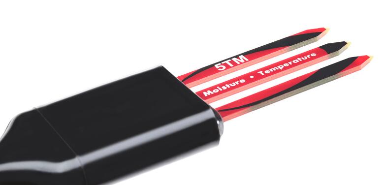 5TM設(shè)計用于測量土壤或栽培基質(zhì)的體積含水量和溫度。5TM使用運行頻率為70 MHz的振蕩器,通過測量土壤的介電常數(shù)來確定其體積含水量。傳感器叉形探針上的熱敏電阻測定土壤溫度。