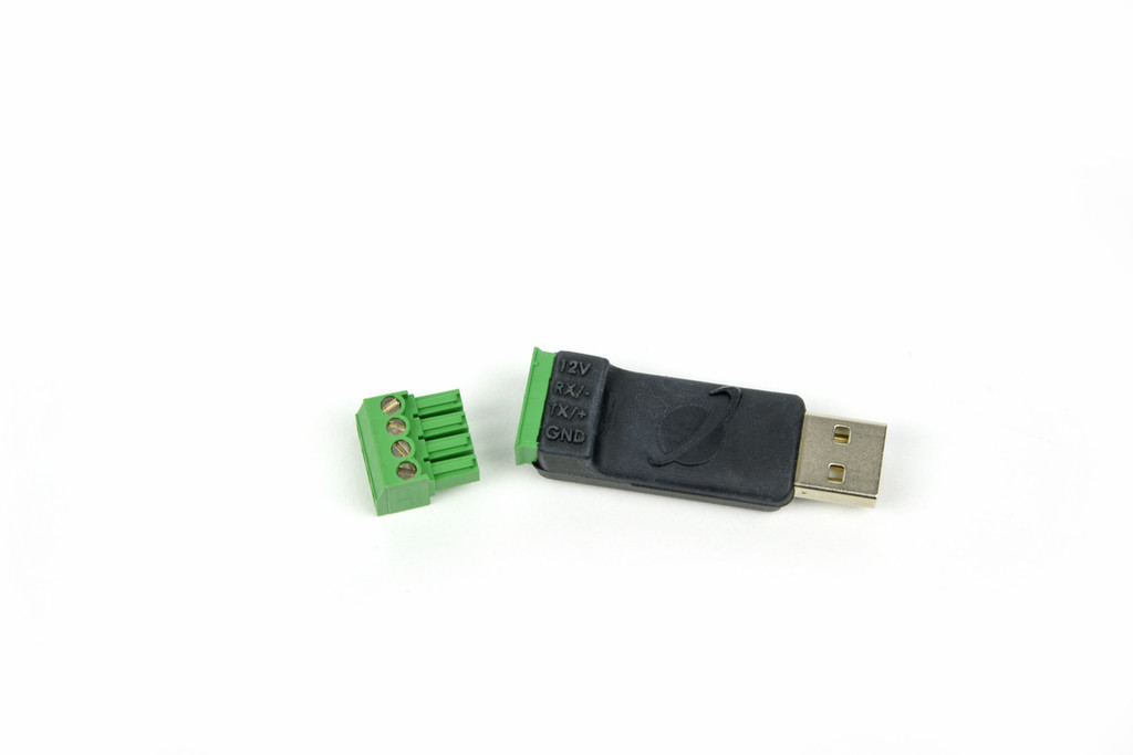 AC-422的一側有一個USB接口,可以插到電腦上。AC-422的另一側有+12 V輸出,GND和Modbus數據通道,用于連接任何標準Modbus傳感器(為了正確操作,請先連接地線)。