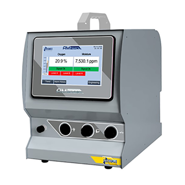 AM Trace 測(cè)量從 20.9% 至低 PPM 氧反應(yīng)快速。AM Trace 還包含濕度傳感器,可以測(cè)量濕度范圍-60°C 至 +60°Cdp。利用觸摸屏技術(shù)和正面輸入和輸出,該分析儀可輕松集成到任何系統(tǒng)。