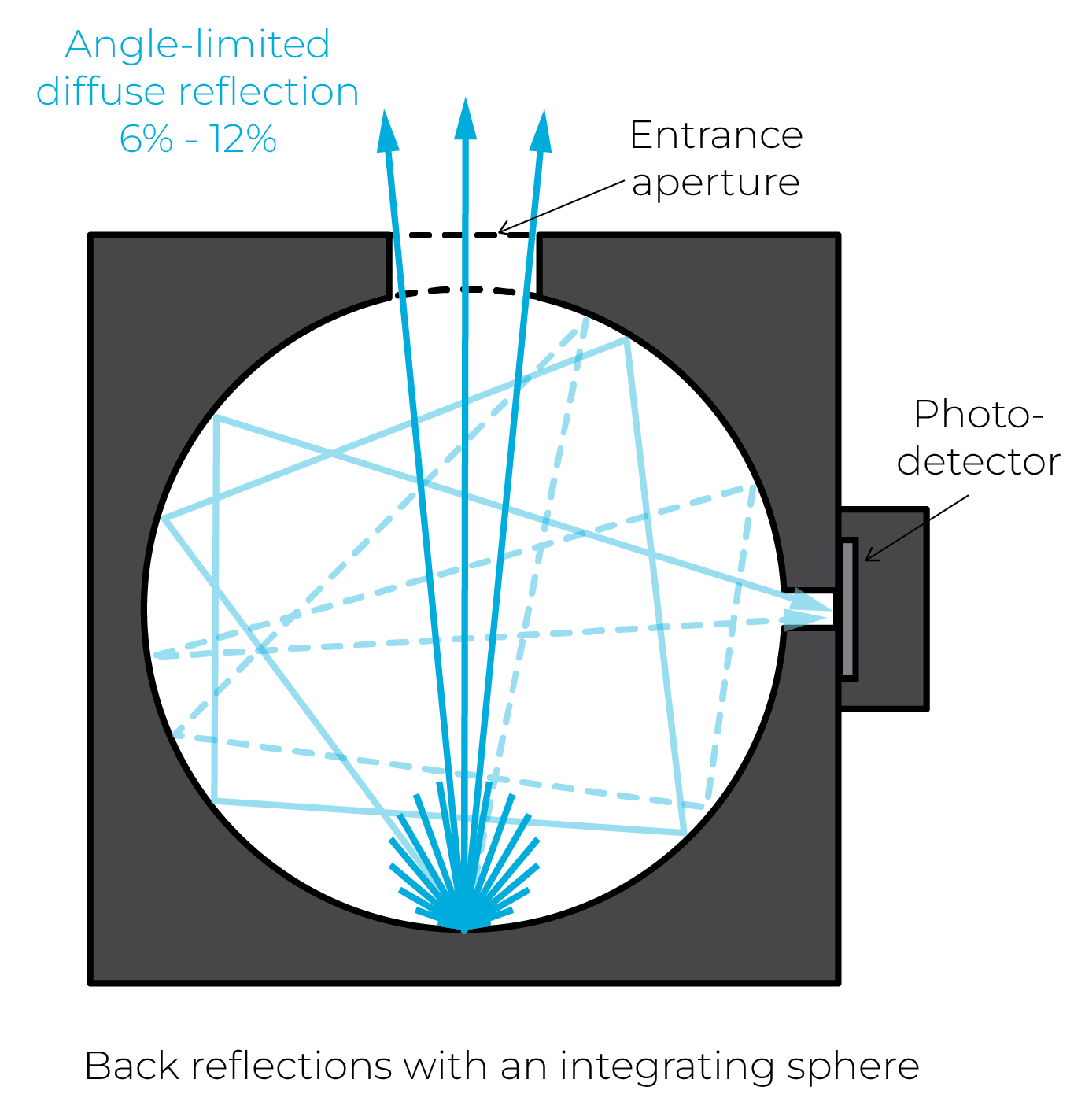 熱檢測器和水熱量計以朗伯方式漫反射 10%-15%的入射光,而 IS 系列的積分球通過其光圈只定向反射 6%-12%的入射光。這有助于提高測量環境中的安全性,更容易處理背面反射。