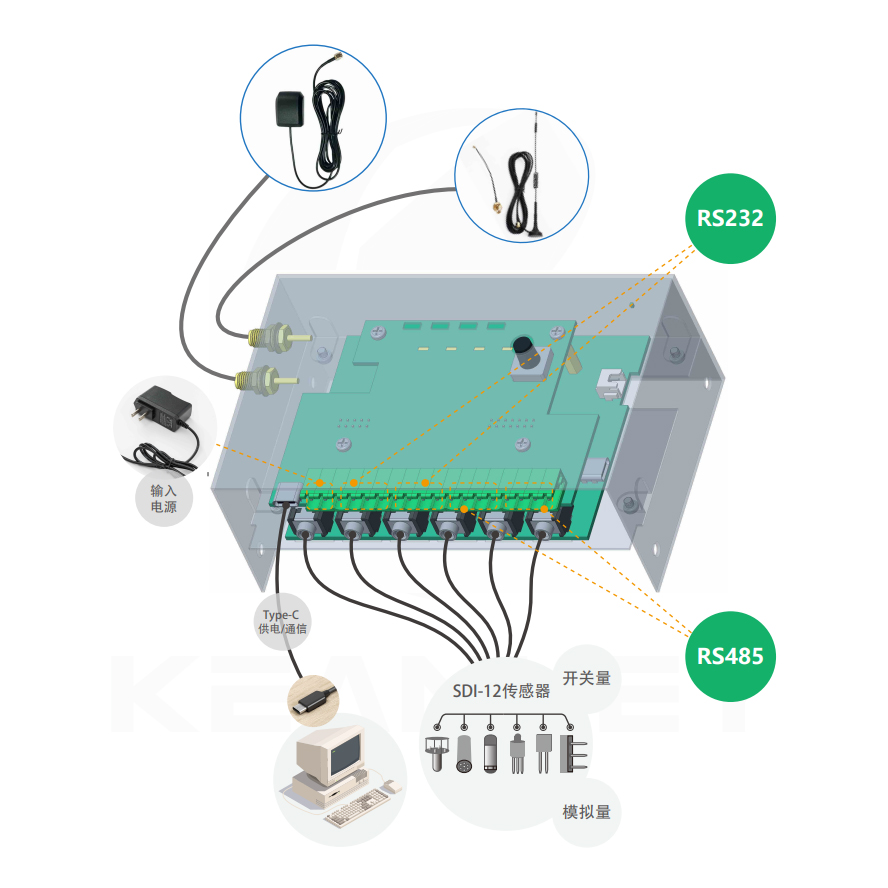 | 傳感器輸入端口 | SDI-12傳感器、模擬量、開關量 |