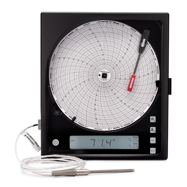 美國DICKSON KT8-40 8英寸(203 毫米)圖表記錄儀提供所有圖表記錄儀中較大的分辨率。現(xiàn)在具有可更換傳感器,校準(zhǔn)您的圖表記錄儀比以往任何時(shí)候都更容易。所有圖表記錄儀均配有 8 英寸大圖表和用戶可選擇的記錄時(shí)間范圍(1 天、1 周)和范圍。