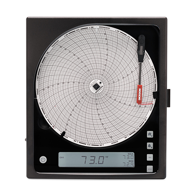 美國DICKSON KT8-50 8英寸(203 毫米)圖表記錄儀提供所有圖表記錄儀中較大的分辨率。現在具有可更換傳感器,校準您的圖表記錄儀比以往任何時候都更容易。所有圖表記錄儀均配有 8 英寸大圖表和用戶可選擇的記錄時間范圍(1 天、1 周)和范圍。