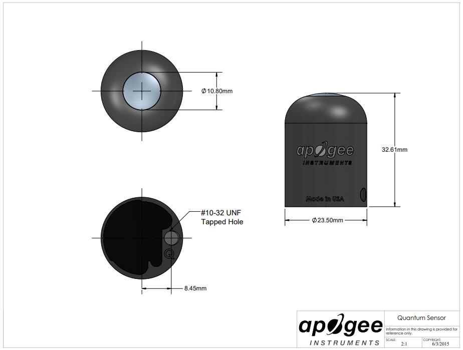 MQ-200X 傳感器采用 Apogee 較舊且更經濟的光電探測器,非常適合在陽光下準確測量光合有效輻射 (PAR),金屬鹵化物和高壓鈉燈。要測量其他光源,包括 LED,建議使用更新的全光譜或 ePAR 傳感器。