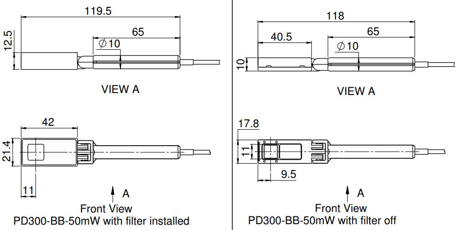 PD300-BB-50mW 輻射傳感器具有平坦光譜響應(yīng)光電二極管傳感器,用于測量寬帶光源。它涵蓋 430 - 1000nm 的光譜范圍,具有 10x10mm 的孔徑,帶旋轉(zhuǎn)支架和可拆卸濾光片。不帶濾波器時,其功率測量范圍為 50pW – 4mW。使用濾波器時,功率范圍為 1nW - 50mW。該傳感器帶有一根 1.5 米長的電纜,用于連接到儀表或 PC 接口。