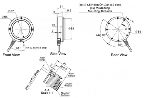 PE80BF-DIF-C是一種熱釋電能量計(jì),帶有聚光束漫射器。孔徑為67mm,可以測量4mJ至40J的能量。它可在不超過250Hz的重復(fù)頻率下工作,覆蓋0.19-2.2,2.94μm的光譜范圍。探頭配有1.5米長的標(biāo)準(zhǔn)電纜,用于連接儀表或PC適配器。