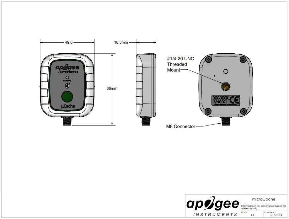 新的 AT-100 microCache (μCache) 微型記錄器是一款堅固耐用的獨立電池供電設備,可以收集大于 400,000 個數據點,并使用我們免費的 ApogeeConnect 應用程序通過藍牙將您的傳感器連接到您的 iOS 或 Android 設備。該應用程序允許您進行實時測量、設置自定義數據記錄間隔、監控日光積分并繪制圖表、確保光周期、下載數據集等。