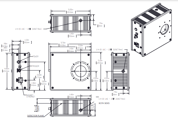 Pyrocam IIIHR 的幀率是多少?25/50Hz 斬波模式,SS-100Hz 連續脈沖模式,高達 1kHz 非連續脈沖模式