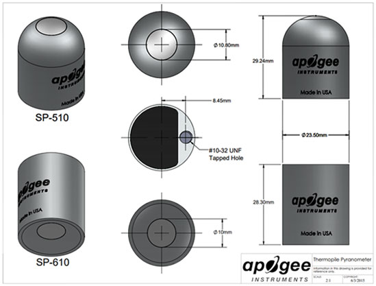 這些傳感器也可以與我們向下的日射強(qiáng)度計結(jié)合使用,形成反照率計。對于此應(yīng)用,我們推薦 Apogee SP-710-SS 反照率計傳感器套件,其中包括一個 SP-510-SS 向上的總輻射表、一個 SP-610-SS 向下的總輻射表、一個 AY-001 差分分離器,以及AW-605-SS 5 米電纜。 要安裝到桅桿或直接安裝到太陽能電池板,我們建議使用 AL-130 反照率計安裝支架或 AM-500 凈輻射計安裝支架,搭配 帶 12" 桿的AM-130安裝夾具。