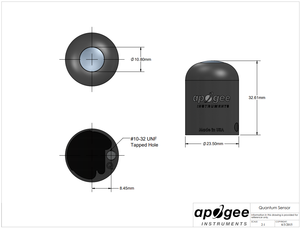 | 校準系數 | 10 μmol mˉ2 sˉ1 / mV(靈敏度的倒數) |