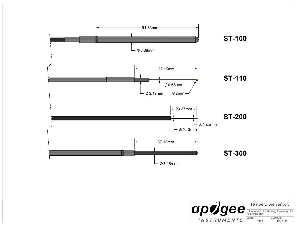 ST-100 是一款高精度熱敏電阻(0 至 70 C 范圍內為 ± 0.1 C),安裝在防水外殼中,專為連續測量空氣、土壤或水而設計。