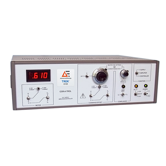Trek 610E 提供六種高壓操作模式。作為高壓放大器,Trek 610E 通過 100 V/V 或 1000 V/V 的開關(guān)可選設(shè)置放大外部施加的信號。當用作跨導(dǎo)放大器時,外部施加的電壓信號產(chǎn)生成比例的輸出電流。作為高壓參考電源,Trek 610E 的前面板旋鈕控制輸出電壓,當用作電流電源時,同一個旋鈕控制輸出電流。控制器模式下的 Trek 610E 保持高壓放大器模式,但放大器輸入和反饋元件未固定,可供用戶配置。