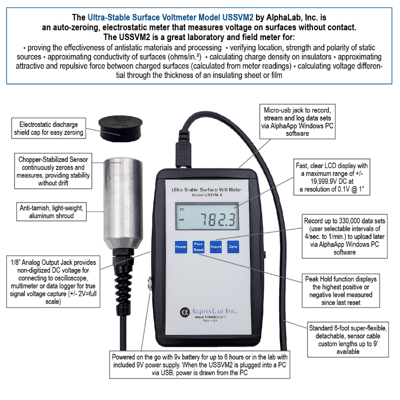 USSVM2 型穩(wěn)定表面電壓表采用傳感器快門(mén)/開(kāi)關(guān)技術(shù),可提供長(zhǎng)期穩(wěn)定性而無(wú)漂移。該技術(shù)還消除了由于帶電空氣分子(空氣離子)導(dǎo)致的錯(cuò)誤或偏移讀數(shù)。該傳感器有一根 29 英寸的可拆卸電纜,可延長(zhǎng)至 9 英尺。