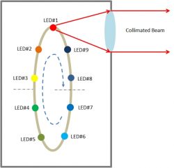 可選的聚焦模塊可以安裝在 LED 準直器的前面,以將光聚焦到一個狹窄的點上,這是 LED 發射器的圖像。