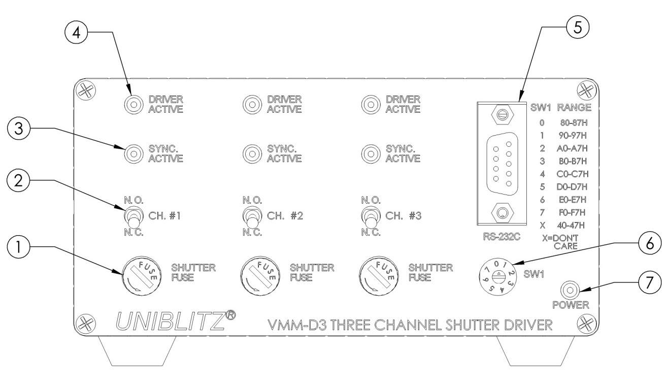 | 常開/常閉開關(guān) (2) | 在每個通道的 VMM-D3 接收到觸發(fā)信號之前,鑰匙開關(guān)的位置決定了快門狀態(tài)。 |
