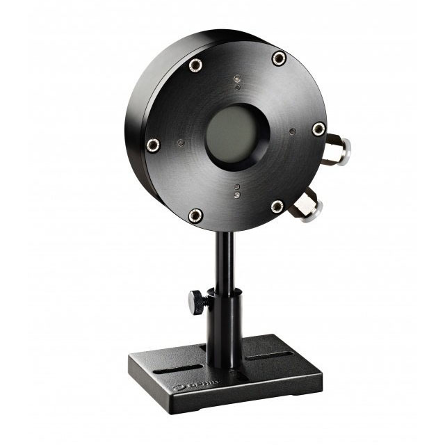 The 1000W-LP2-34 is a water cooled thermal power/energy laser measurement sensor for high power density and long pulse lasers. It has a 34mm aperture and can measure power from 5W to 1000W and energy from 400mJ to 300J. Its high damage threshold LP2 coating covers the spectral range 0.35 – 2.2μm. The sensor comes with a standard 1.5 meter cable for connecting to a meter or PC interface.