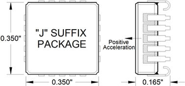 The Model 1531 sensitive axis is perpendicular to the bottom of the package, with positive acceleration resulting from a positive force pushing on the bottom of the package. The seismic center is located on a centerline through the dual sense elements and halfway between them.