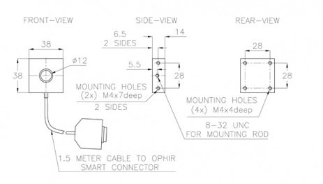The 20C-BB-12-SH is a compact thermal power/energy laser measurement sensor with dimensions only 38x38x14mm. It has a 12mm aperture and can measure from 10mW to 4W stand alone and to 20W when heat sinked. It can measure energy from 6mJ to 10J. It has the spectrally flat broadband coating and covers the spectral range from 0.19 to 11μm.