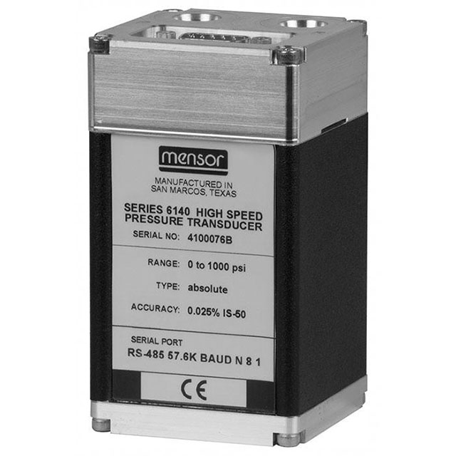 The model CPT6140 high-speed pressure sensor is a compact, robust sensor with an output mode of 250 Hz (4 ms) response time and a measuring range which is freely selectable between -1 ... +400 bar (-15 ... +6,000 psi). The accuracy of up to 0.025 % IS-50 for 365 days makes the sensor suitable for a wide range of applications in precision measurement technology.