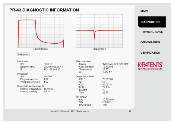 The measurement ranges from 0 to 100 Brix with a precision of +/ -0.1 Brix and a repeatability of +/ -0.05 Brix. The measurements are automatically temperature compensated over the entire process temperature range from -20°C to 130 °C and are resistant to CIP (Cleaning in situ) and SIP (Disinfection in situ) processes. An output signal of 4-20 mA proportional to the temperature compensated Brix value is provided for real-time process control.