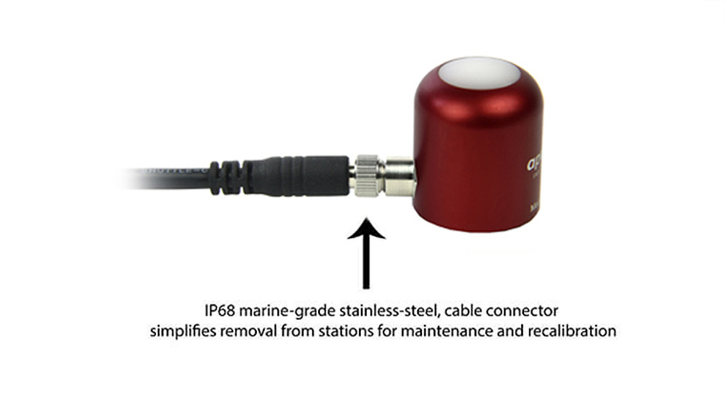 The S2-432 Red - Far-red sensor outputs a digital signal using Modbus RTU protocol over RS-232 and RS-485. The sensor features a rugged, aluminum housing that is fully-submersible and built to withstand harsh conditions, and high-quality cable terminating in pre-tinned pigtail leads for easy connection to dataloggers and controllers. The sensor cable includes an IP68 marine-grade stainless-steel cable connector to simplify sensor removal and replacement from permanent installations for maintenance and calibration. Typical applications include measuring the Red / Far-red ratio (RFR) for ecological applications, including the effect of spectral quality on phytochrome. The RF ratio influences plant height, leaf expansion rates, and other photobiology and plant morphogenic responses.