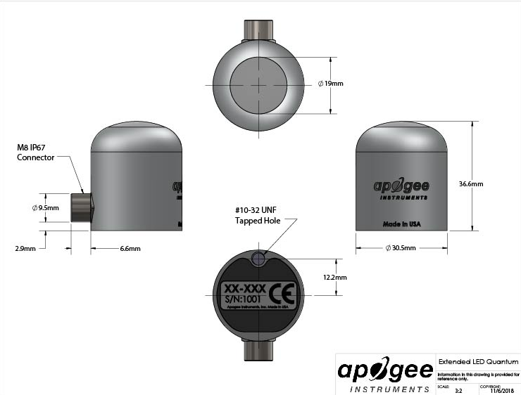 The analog version of this sensor (SQ-610) comes with the inline cable connector placed 30 cm from the sensor head for either standard use as a long-cable pigtail sensor, or for use with our microCache Bluetooth Micro Logger by unscrewing the connector, discarding the long section of cable and then screwing the sensor to the mating connector on the microCache.
