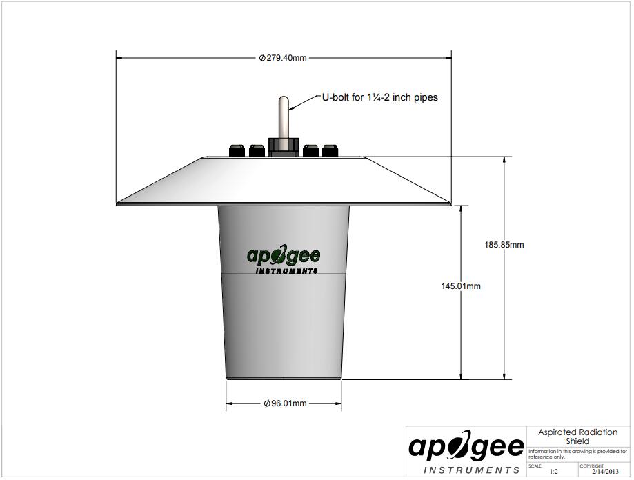 The TS-210 model includes the TS-200 24 volt fan-aspirated radiation shield and an ST-110-SS thermistor. The unique aerodynamic shape and rugged, low-power fan make it the first research-grade fan-aspirated shield that is practical for use on battery or solar powered stations. The shield provides excellent sensor protection and accommodates various combinations of thermistors, PRTs, and humidity probes using one of the sensor port adapter plugs. Click here for a list of compatible sensors. If you use a different sensor, please contact us directly to discuss compatibility. Typical applications include air temperature and humidity measurement in weather networks, often for weather forecasting, and solar energy sites. Fan-aspirated shields are also important in the precise measurement of air temperature ad humidity gradients above the land surface and in climate change monitoring.