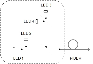 Combine 2, 4, 6 or 8 LEDs into a single fiber output